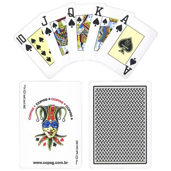 Copag çift katlı COPAG poker kartları sağlam plastik malzemeden yapılmıştır ve uzun kullanım ömrü ve kolay kullanım özellikleriyle öne çıkar. Kartlar tamamen yıkanabilir olduğundan solmaları engellenmiştir....